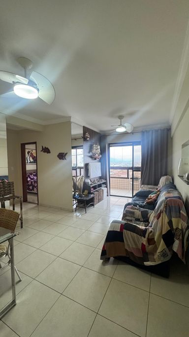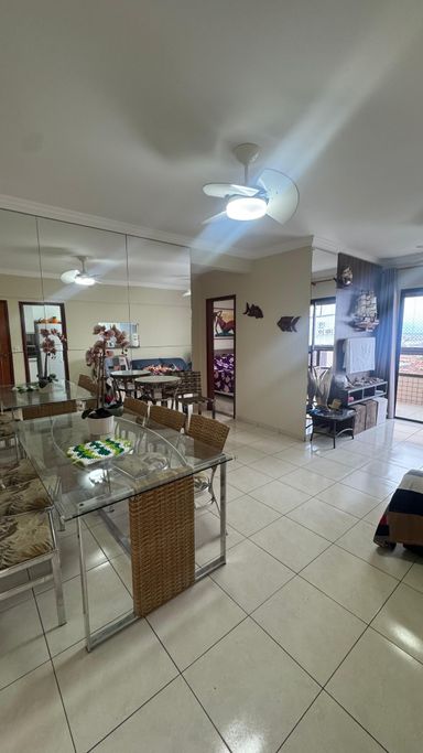 • Sala para 02 ambientes com Sacada fechada em vidro, vista mar,