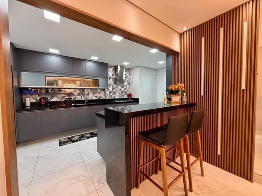 Descrição: 3 dorms, 3 suítes, 5 banheiros, sala, cozinha,